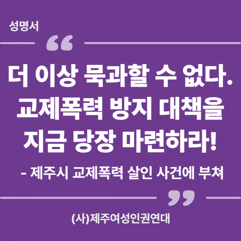 더 이상 묵과할 수 없다. 교제폭력 방지 대책을 지금 당장 마련하라! - 제주시 교제폭력 살인 사건에 부쳐